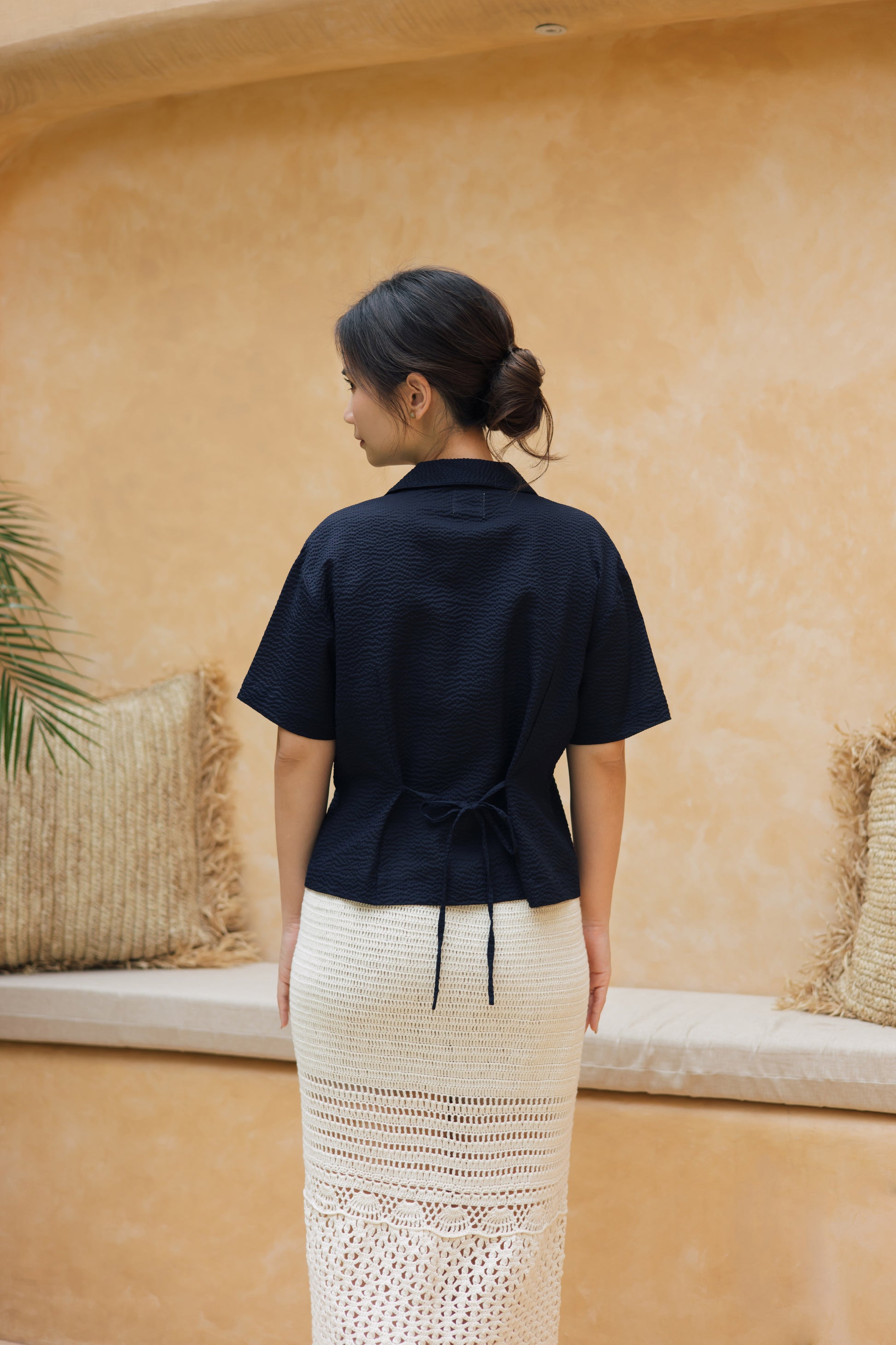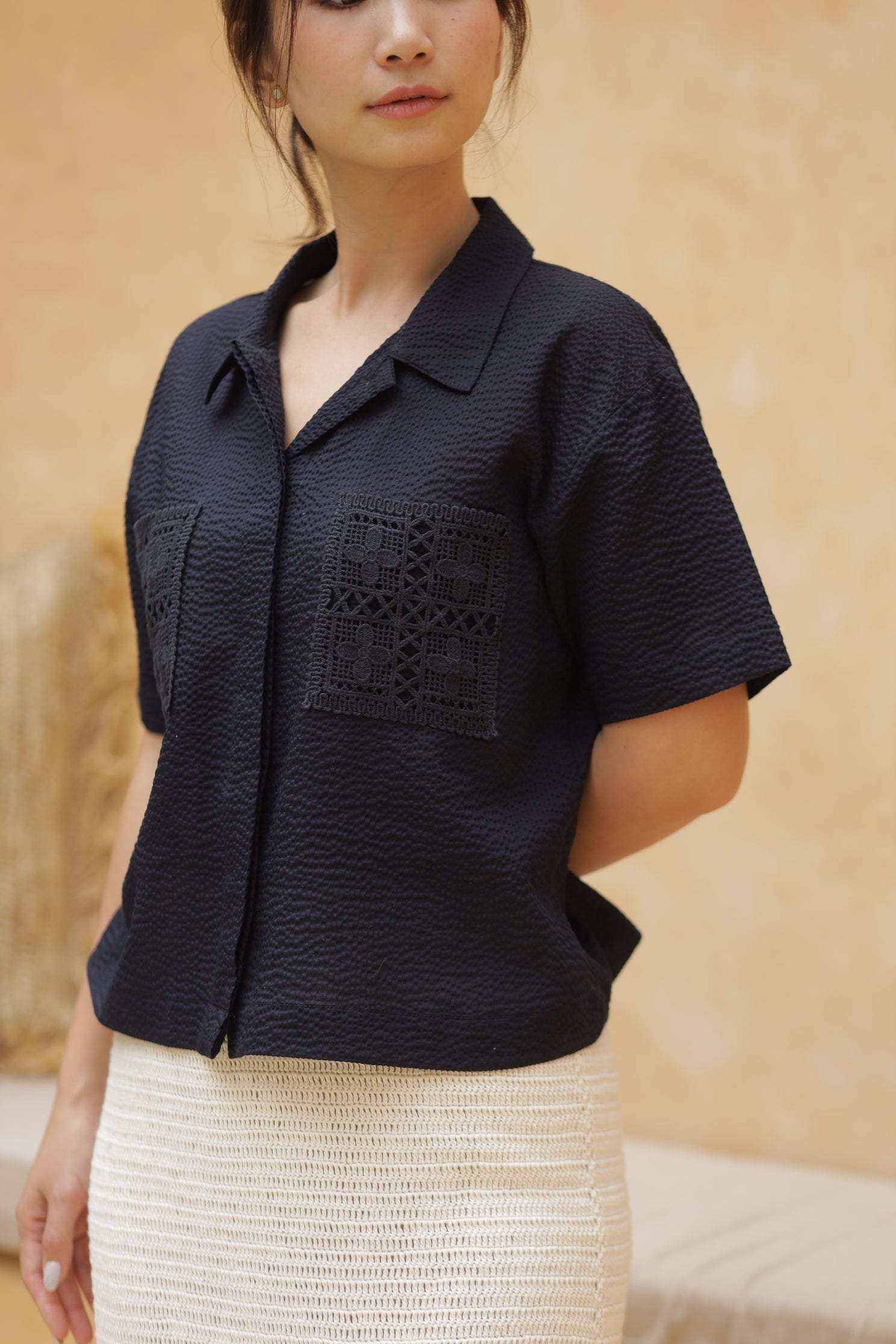 A relaxed short-sleeve button-up crafted for effortless days. Designed with a breathable silhouette and earthy tones, Naia brings comfort with a touch of character—perfect for dressing up or down. Comes with 2 crochet pocket on the front.